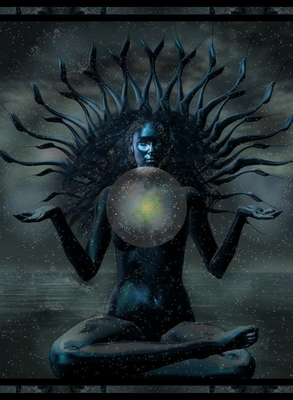 Eu sou as profundezas aveludadas do céu noturno, as brumas rodopiantes da meia-noite, coberta de mistério.